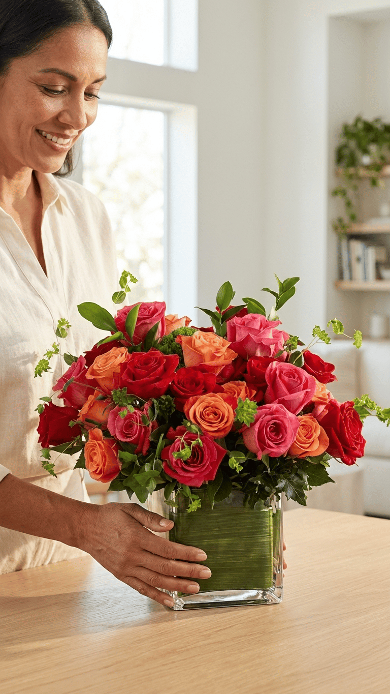 • Arreglo de flores elaborado cuidadosamente por floristas expertos, eligiendo siempre las flores más frescas, hermosas y de la más alta calidad.