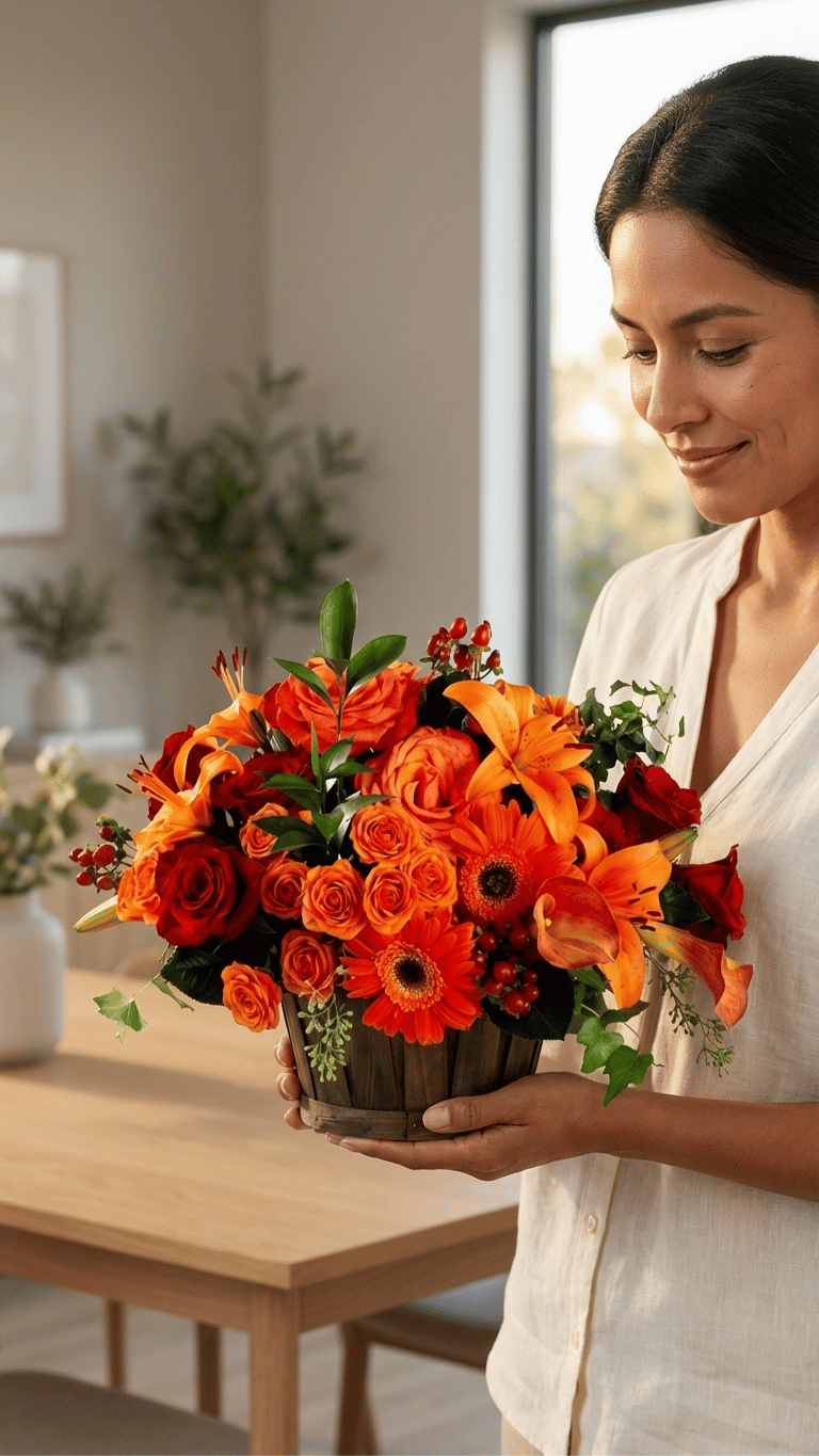 NATURALEZA GENEROSA – Arreglo en Maceta con Rosas, Lilium y Gerberas.